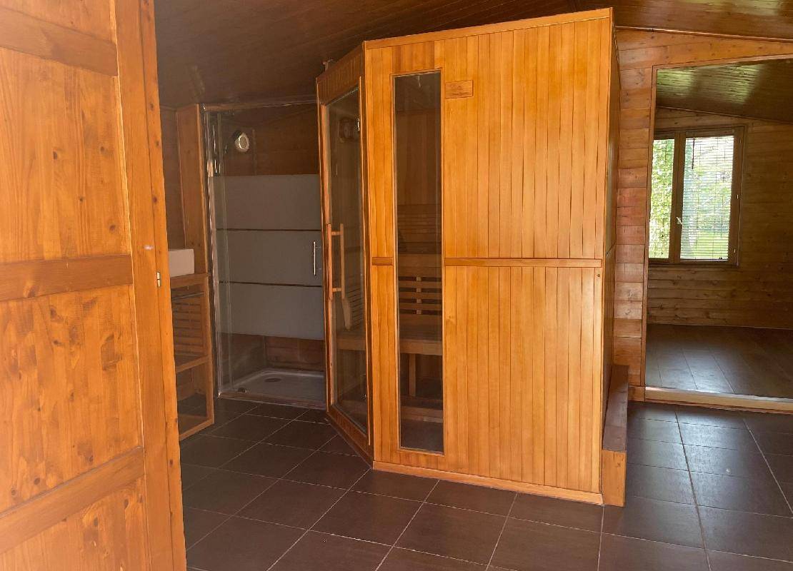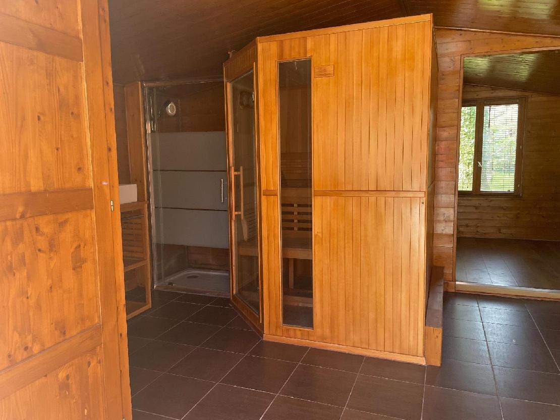 Pool house avec espace bien être sauna, pièce -chambre, douche, toilettes.